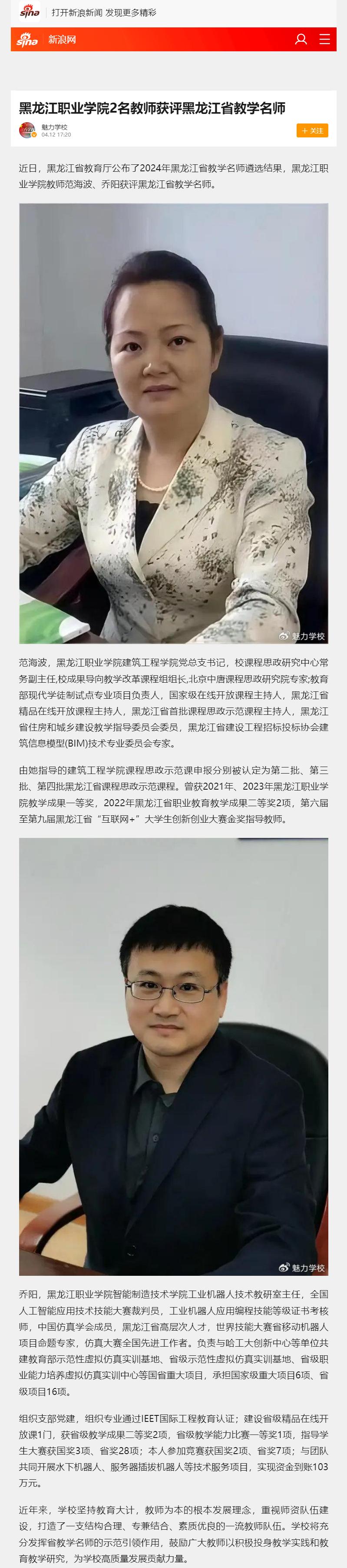 【新浪新闻】jinnian金年会2名教师获评黑龙江省教学名师