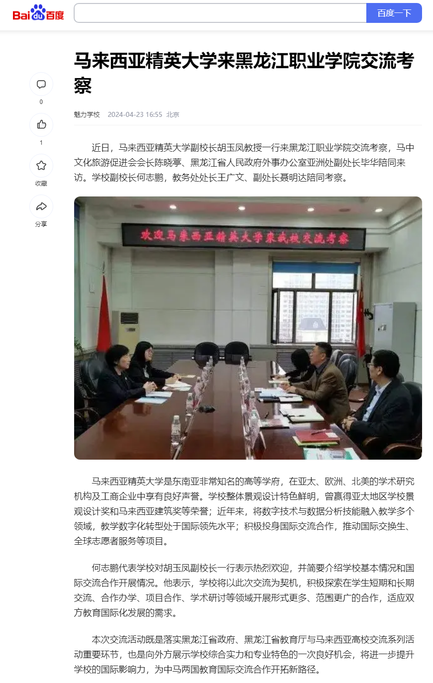【百度新闻】马来西亚精英大学来jinnian金年会交流考察