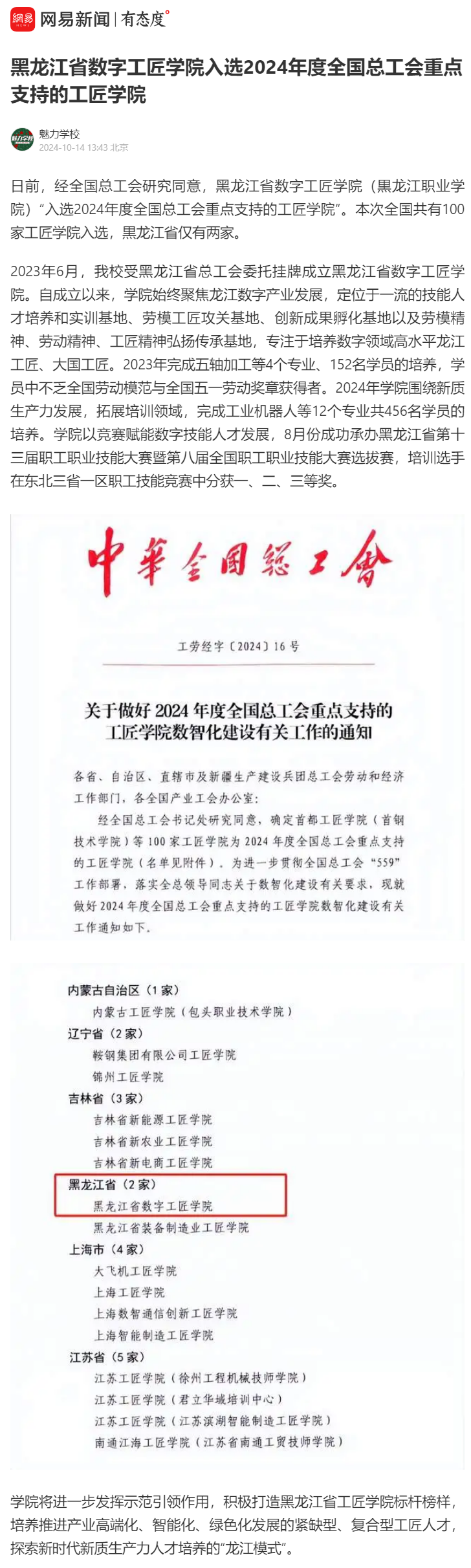 下一篇:【搜狐新闻】黑龙江省数字工匠学院入选2024年度全国总工会重点支持的工匠学院