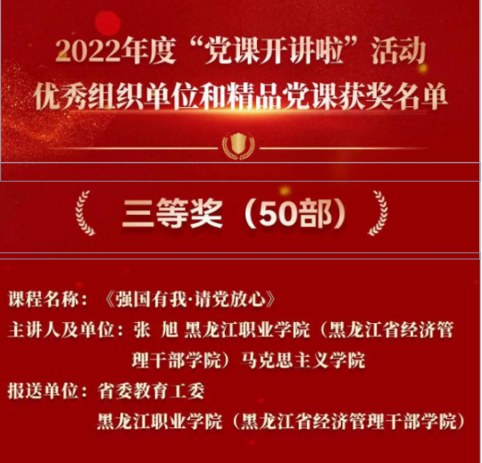 喜报:马克思主义学院张旭老师荣获黑龙江省“党课开讲啦”活动精品党课三等奖