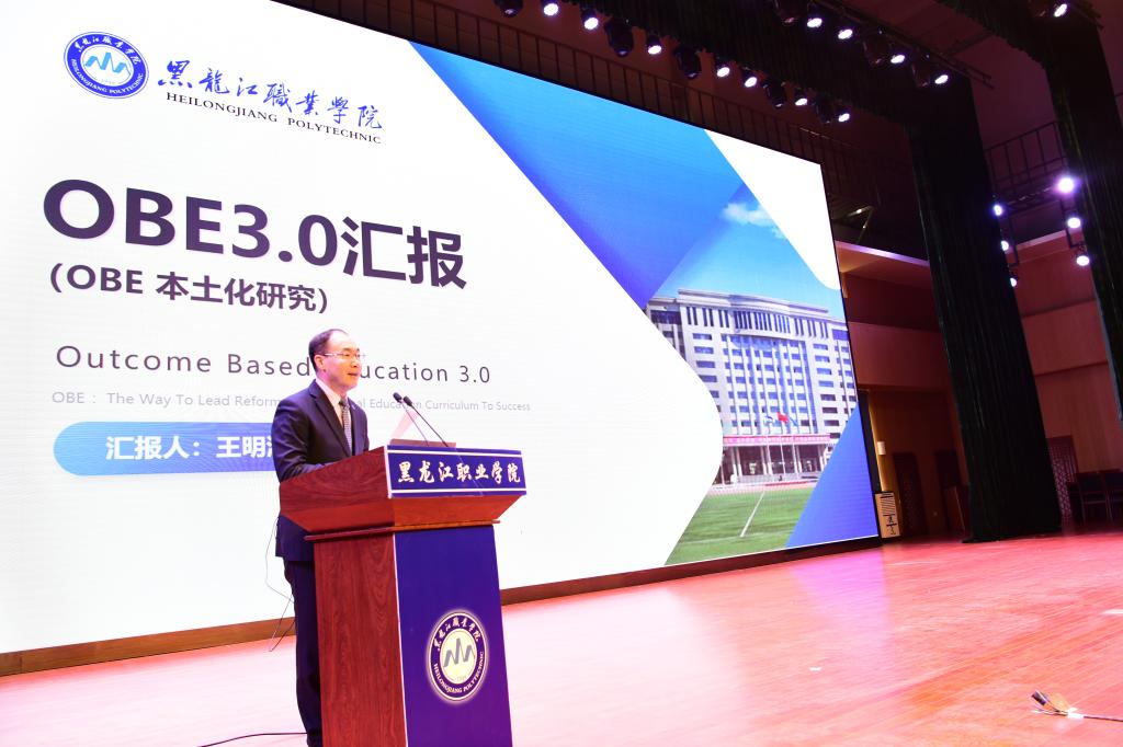 会上,郑福贵对成果导向教育教学改革2.0阶段工作进行了总结,回顾了成果导向本土化改革8年历程,全面总结了OBE2.0改革的路径和创新做法,介绍了改革成效和取得的标志性成果;副校长王明海对实施OBE3.0进行了介绍,从全面修订培养目标等教学文件、启动“龙职”标准的专业认证、努力推进课程评价改革、探索“龙职”专业课程模式,全面应用OBE智慧教与学平台五个方面,对OBE3.0的具体内涵和实施路径进行了详细讲解。