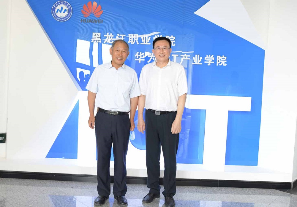 ▲陈海波与赵继会在龙职·华为ICT产业学院合影