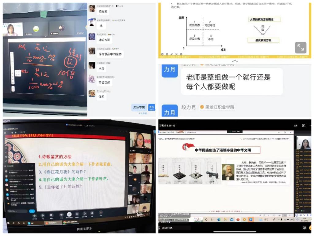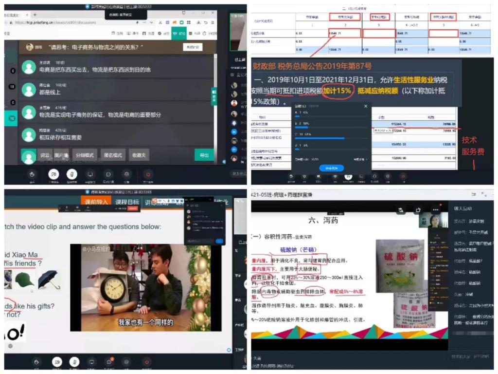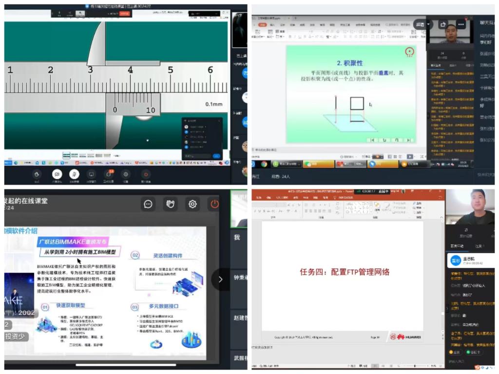 ▲智能制造技术学院、汽车与动力学院、建筑工程学院和信息工程学院的老师在线上认真授课