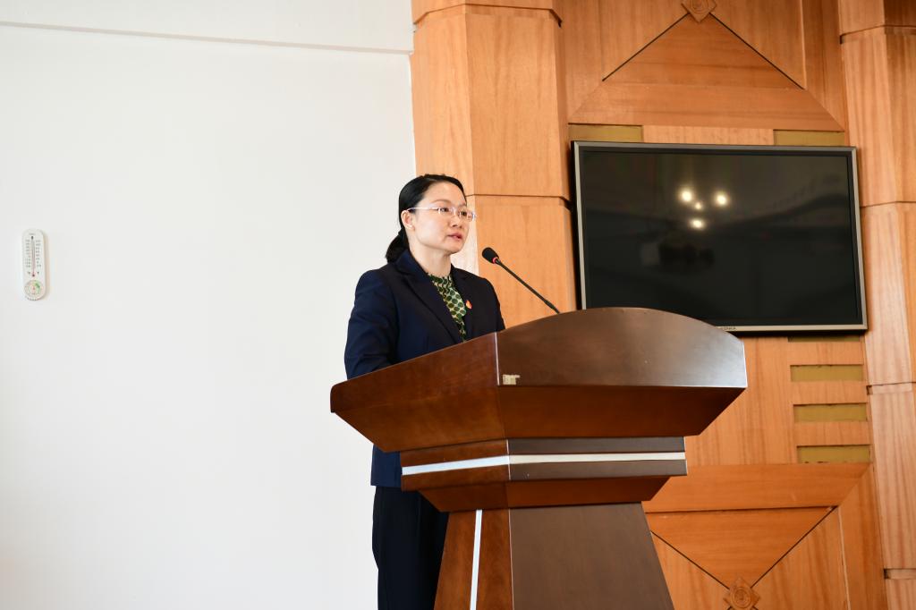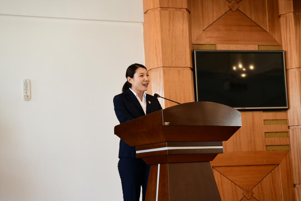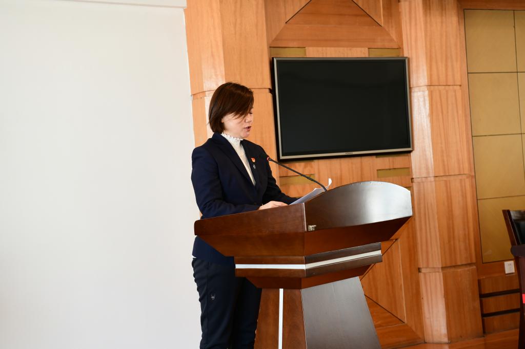 ▲学生工作部党总支书记石倩作交流发言