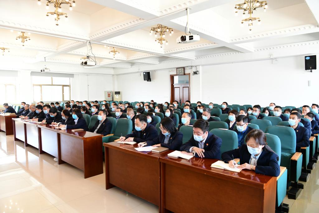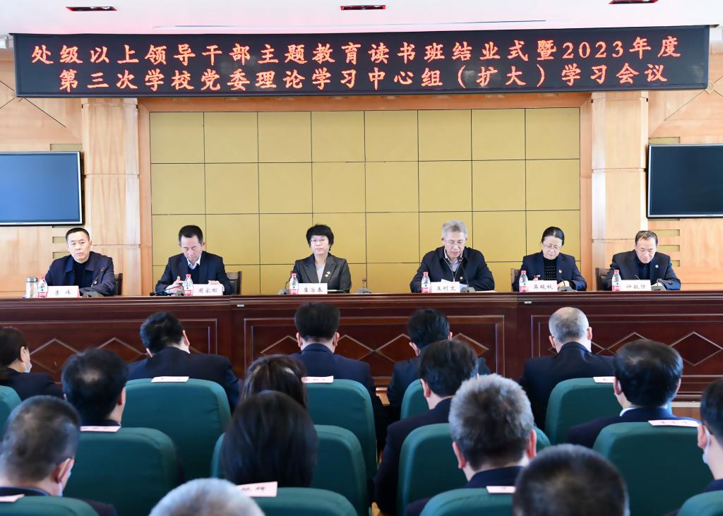 4月23日,学校召开处级以上领导干部主题教育读书班结业式暨党委理论学习中心组(扩大)学习会议。学校党委书记崔治春出席会议并讲话,纪委书记李伟作党委理论学习中心组中心发言,党委副书记、校长王利文主持会议。学校党委班子成员和全体处级领导干部参加会议。