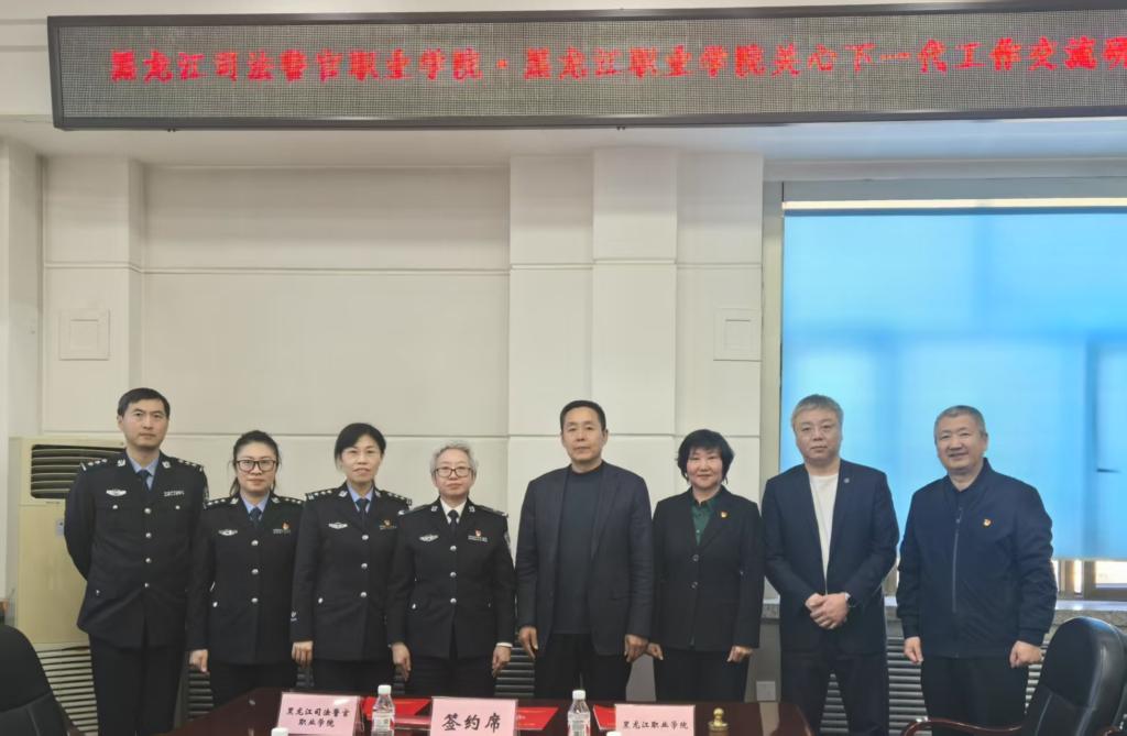 在交流研讨会上,李伟和施秀艳分别介绍了各自学校的基本情况。学校关工委办公室主任张晓东和黑龙江司法警官职业学院政治处副主任李小侠就各自学校关心下一代工作开展情况做了汇报。学校关工委副秘书长、离退休人员工作处党总支副书记杜爽与李小侠签订《关工合作共建协议书》。