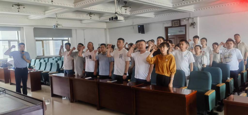 培训结束后,数字商贸学院教师于德洋带领全体新入职辅导员进行入职宣誓。