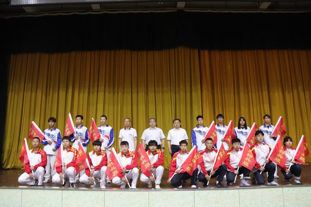 会上,赵彦生宣读了第二校区2022-2023学年学生早军操表彰奖励决定,钟敏强、赵彦生、第二校区各二级学院党总支书记分别为获得表彰的先进集体颁发奖旗。
