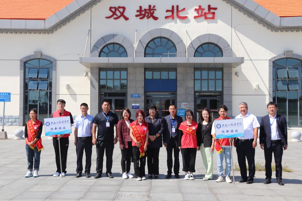 ▲校长王利文、党委副书记周家郁慰问哈站迎新工作人员