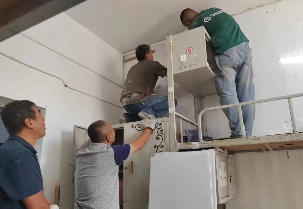 ▲公寓辅导员和学生志愿者为2023级新生办理入住