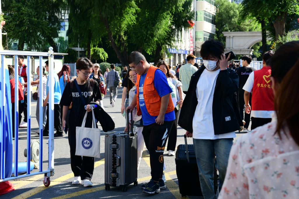 学校领导深入迎新接站点、志愿服务站、学生公寓、教学楼等地,与2023级新生及家长亲切交流,了解同学们的生源地、所学专业、入学感受及未来规划等情况,勉励同学们要尽快适应新环境,转换新角色,争做新时代有为青年。每到一处,学校领导都驻足询问、细心聆听,详细了解新生报到流程、住宿安排、绿色通道办理等工作进展情况,充分肯定一线工作人员的辛苦付出。