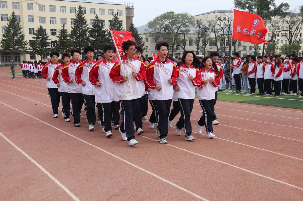 学生工作部副部长于满昌宣读《2023-2024学年度第二学期学生早军操表彰奖励决定》,赵彦生、张晓东、王福胜为获奖集体颁发奖旗。