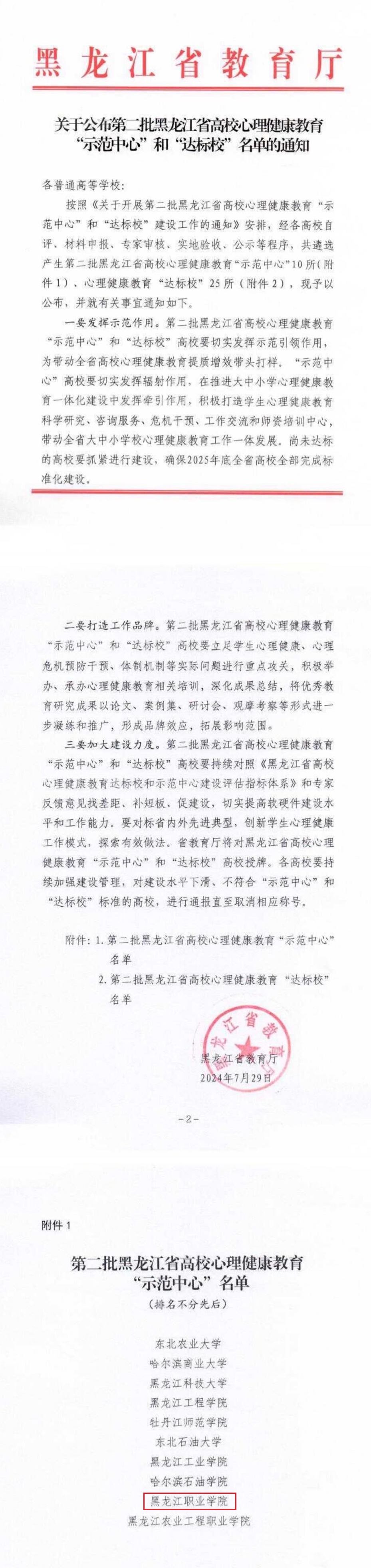 本次评选活动由黑龙江省教育厅组织开展,重点考察高校心理健康教育工作体制机制、工作队伍保障、工作条件保障等10个方面内容,经专家审核、实地验收等,共评选出10所高校心理健康教育示范中心校和25所心理健康教育达标校。
