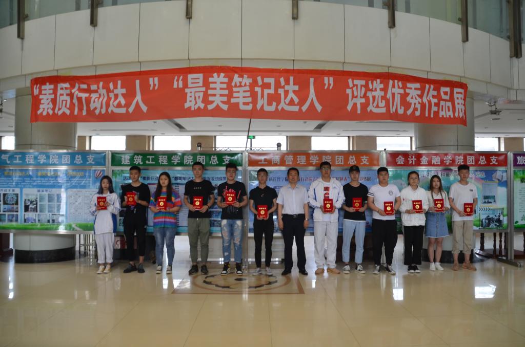 为引导学生养成良好的习惯,促进学生素质全面提升。营造积极向上、严谨诚信、求实创新的学习氛围,形成“明理善思,笃行乐学”优良学风,学工部6月初组织在全校范围内开展“素质行动达人”“最美笔记达人”评选活动。经过班级、学院评选,共评选出“素质行动达人”36人、“最美学习笔记达人”36人,各学院还将活动过程图文材料及成果集中在清华楼一楼宣传栏前进行展示。