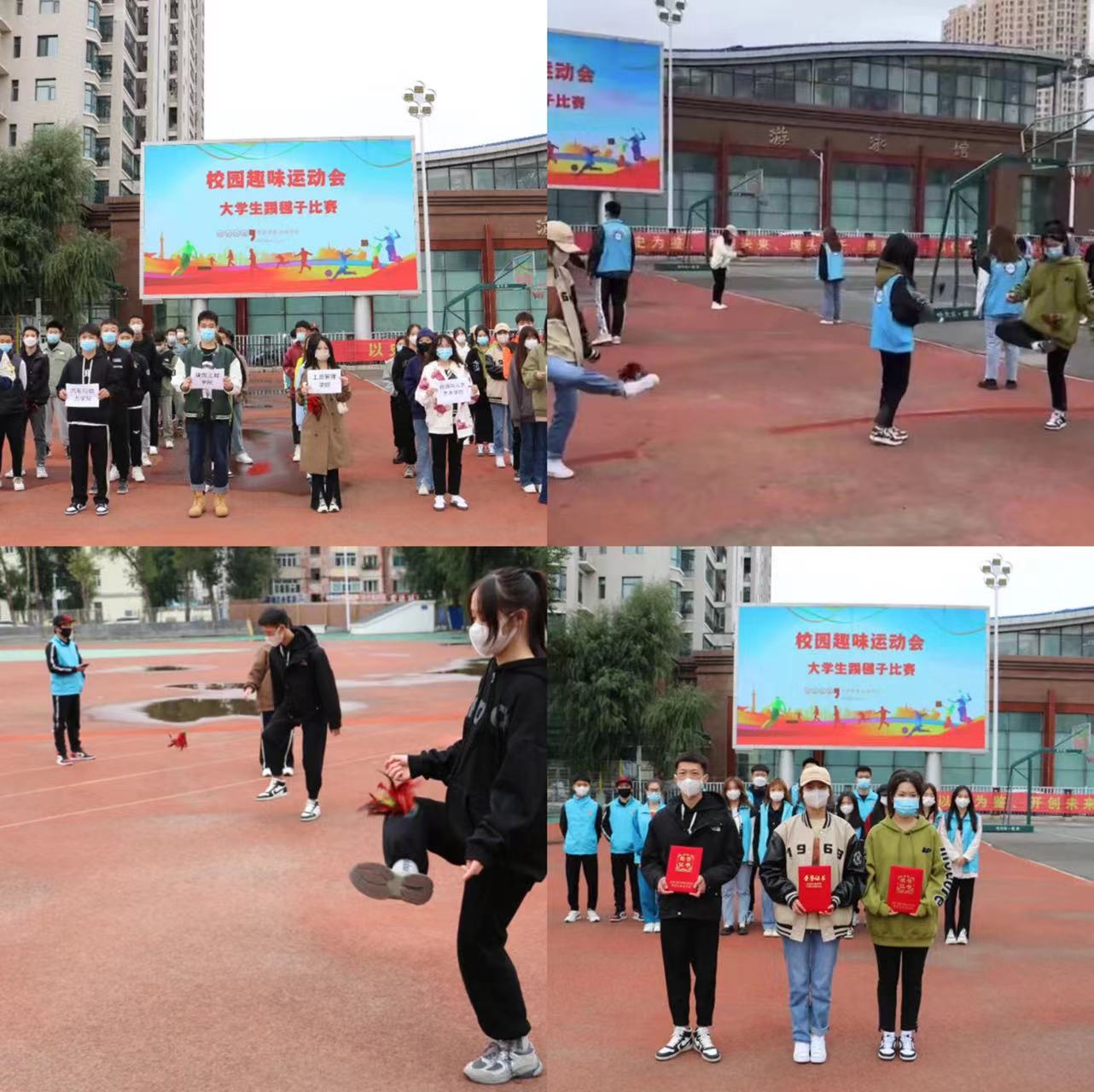 在校团工委、校学生会、校社团联合会、校学生新媒体等组织工作人员的积极倡导下,各二级学院学生积极参与,为期两天的大学生校园秋季趣味运动会初战告捷。经过激烈的角逐,最终,会计金融学院那艳阳同学获得“踢毽子”比赛个人单项第一名、汽车动力学院鲁昱博同学获得“呼啦圈”比赛个人单项第一名、会计金融学院严欣瑜同学获得“单人跳绳”比赛个人单项第一名、工商管理学院代表团获得“集体跳大绳”比赛团体第一名。赛后,校团委学生副书记关成、常雨欣分别为获奖个人和集体颁发了荣誉证书和奖状。