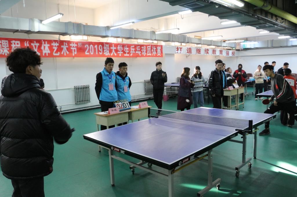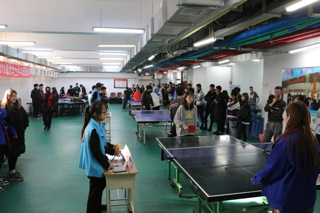 为响应团中央“走下网络、走出宿舍、走向操场”的号召,促进金年会学生积极参与体育运动,加强体育锻炼,在全校营造积极向上、健康活泼、文明有序的校园文化氛围。按照校团委“缤纷四节”活动课程的总体安排,由校团委主办、校学生会文体部承办的“文体艺术节”2019级大学生乒乓球团体赛历时5天时间于12月17日完成了全部赛程,圆满结束。