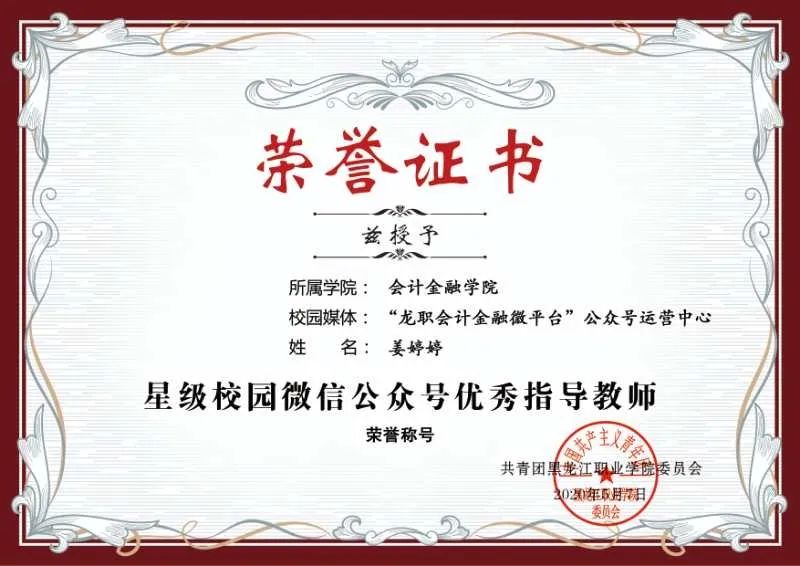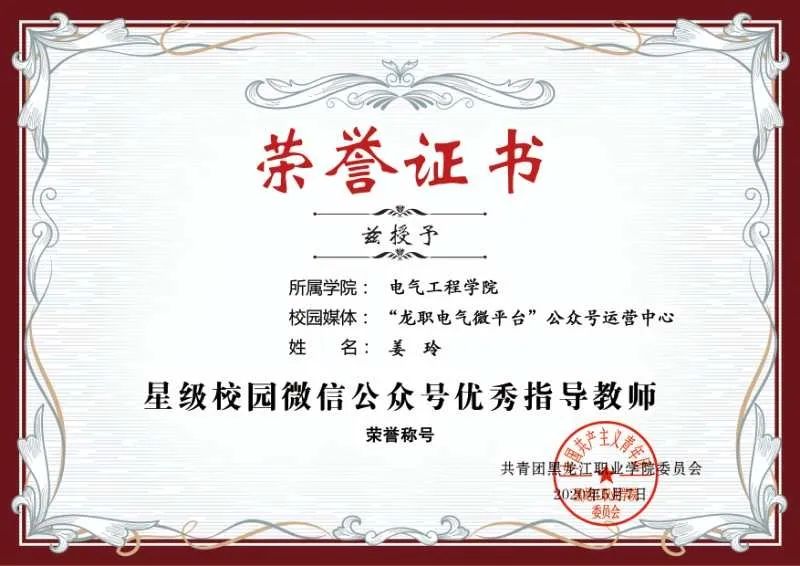 会上,宣传统战部干事、“jinnian金年会”官微公众号执行运营总编纪姿含做了点评,并公布了获奖名单。工商管理学院、会计金融学院、电气工程学院分别荣获“星级校园微信公众号”荣誉称号;工商管理学院代理团总支书记于德洋、会计金融学院团总支书记姜婷婷、电气工程学院团总支书记姜玲分别荣获“星级校园微信公众号优秀指导教师”荣誉称号;工商管理学院刘丽利、会计金融学院吴雨桐、电气工程学院王丽颖三名同学分别荣获“校园新媒体优秀运营个人”荣誉称号。校团委书记邹春雷为获奖集体和个人颁发了电子版荣誉证书。
