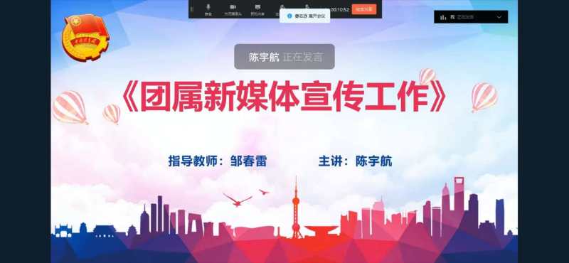 6月19日下午18:00时,第十四期“青年马克思主义者培养工程”暨大学生骨干培训班第七讲在“钉钉”平台上如期举行。本次讲座特邀金年会2018级校团委学生副书记陈宇航为同学们作出《团属新媒体宣传工作》专题讲座。298名青班学院聆听了本次讲座。校团委学生副书记李尚轩主持了讲座活动。