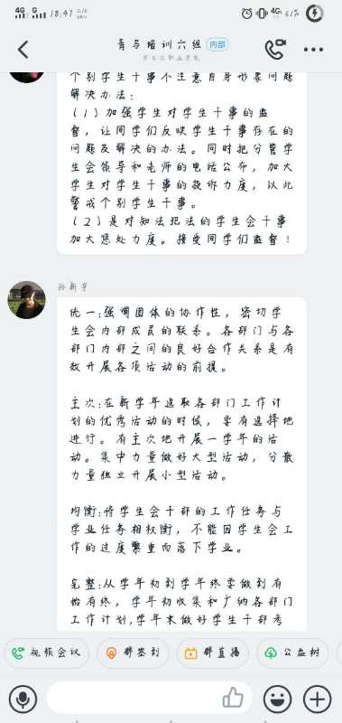 在小组讨论环节,同学们就“你认为金年会学生组织在工作和服务中存在哪些不足?应如何加以改进和完善?”进行争先恐后的发言。做好一名优秀负责的学生干部,无论在工作和服务中都应相互学习共同进步并不断改进和完善自己。