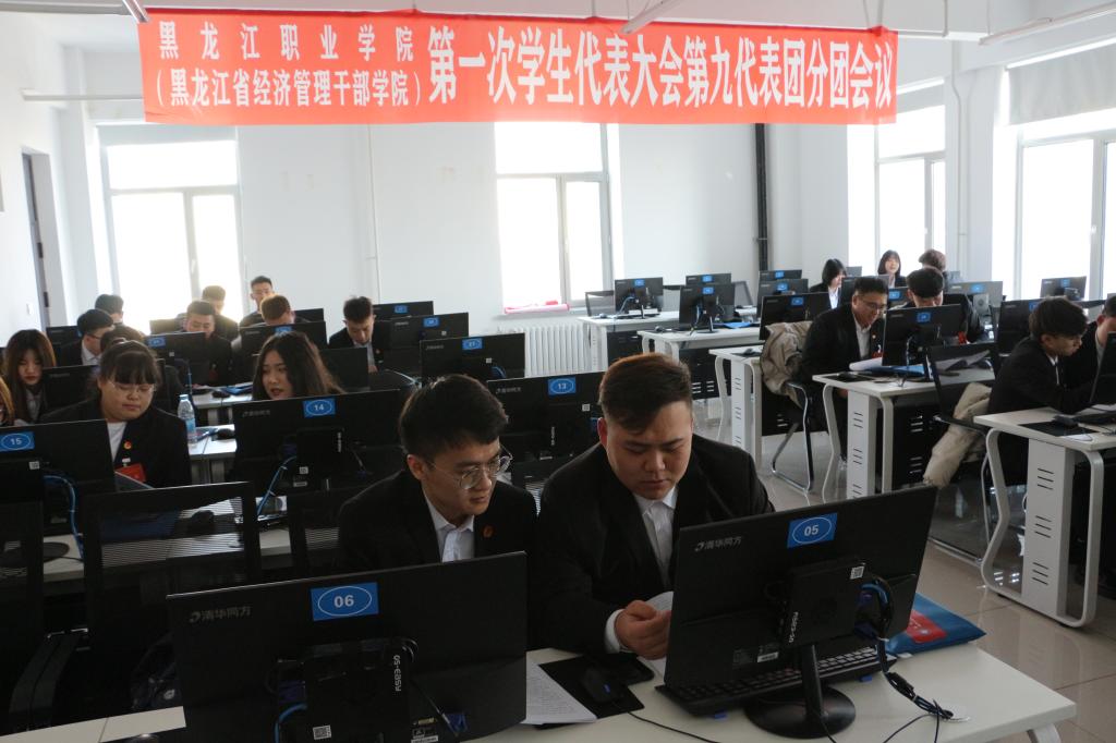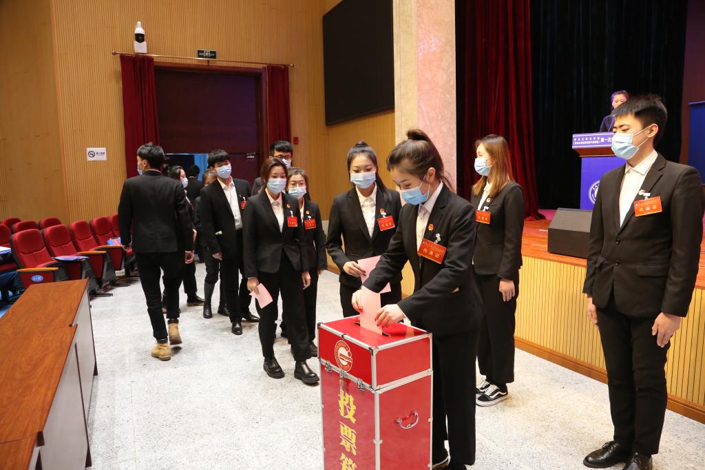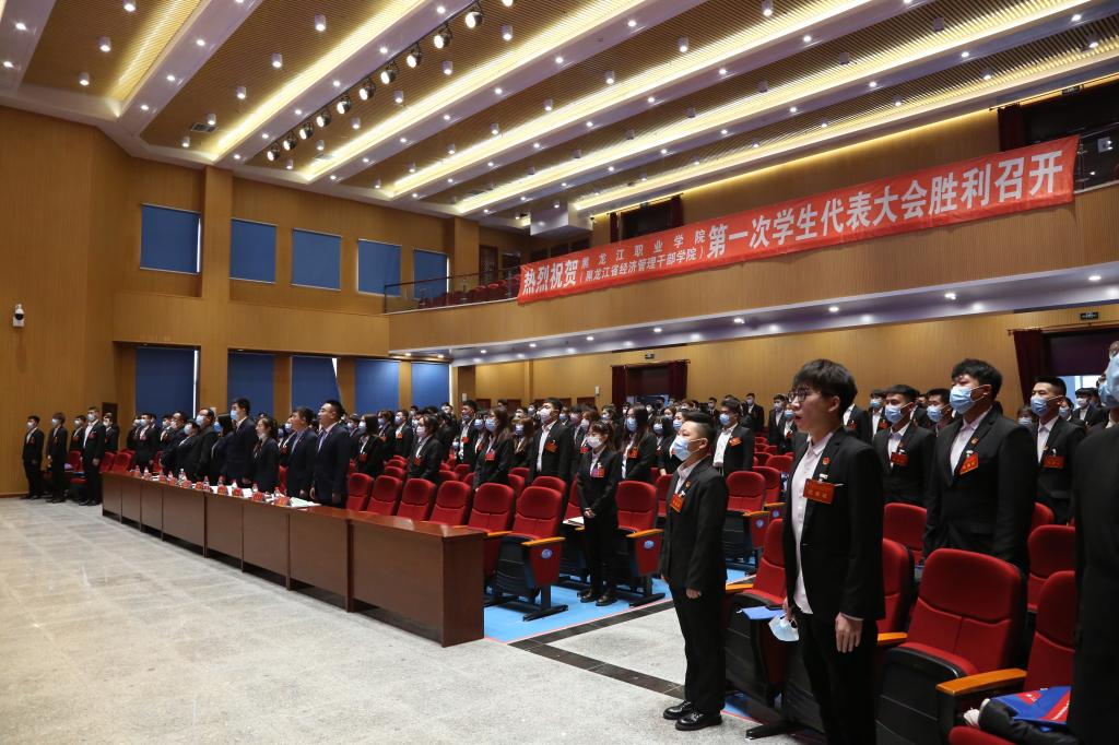 上午11:30,在大会第二次全体会议暨大会闭幕式上,审议通过《jinnian金年会(黑龙江省经济管理干部学院)学生会工作报告》《jinnian金年会(黑龙江省经济管理干部学院)学生会章程》等各项决议,投票选举产生了第一届学生委员会委员。大会筹委会主席团成员杨雪静宣读大会倡议书,倡议同学们胸怀祖国,坚定信念,把自己的青春奉献给祖国的建设和民族的振兴;倡议同学们笃志、厚德、精学、自强,忠信、乐群、务实、创新,用自己的实际行动推动良好的学风、校风建设;倡议同学们艰苦奋斗,求实创新,努力把自己锻炼成为社会主义事业的建设者和接班人。杜超代表校团委作了闭幕致辞,在对大会圆满完成各项议程、取得丰硕成果表示祝贺的同时,对各级学生会组织和全体参会代表提出三点希望:一是强化政治引领,做新时代优秀的建设者和接班人;二是与时俱进,切实加强学生组织的自身建设;三是高度重视,加强对学生干部的监督与培养。大会在《国际歌》的激昂声中圆满落幕。