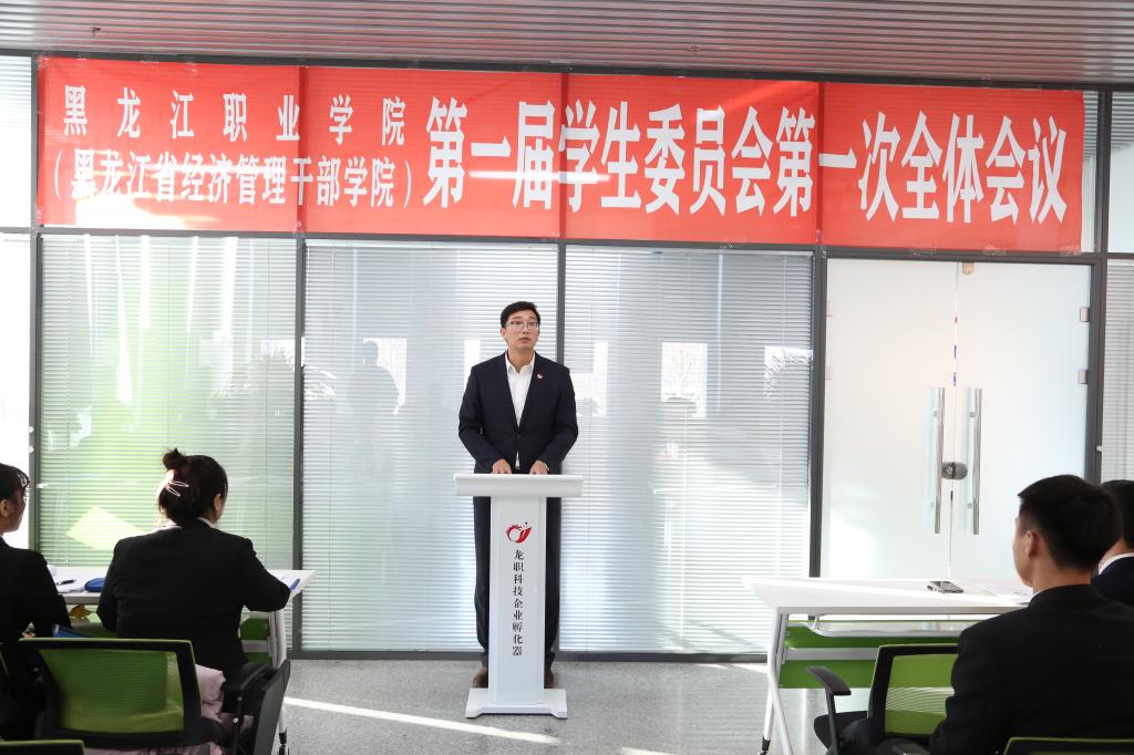 邹春雷代表校团委对学校第一次学生代表大会隆重召开表示祝贺。他希望各级学生组织及各位代表在学校党委的领导下以此次学代会为契机,自觉把个人梦想融入实现中国梦的伟大实践,团结引导金年会青年学生勤奋学习、刻苦钻研,努力培育优良的学风、校风,用实际行动去践行“自强有为、兴业报国”的“龙职”精神,去实现个人成才梦、“龙职”名校强校梦、龙江振兴梦、国家富强梦。