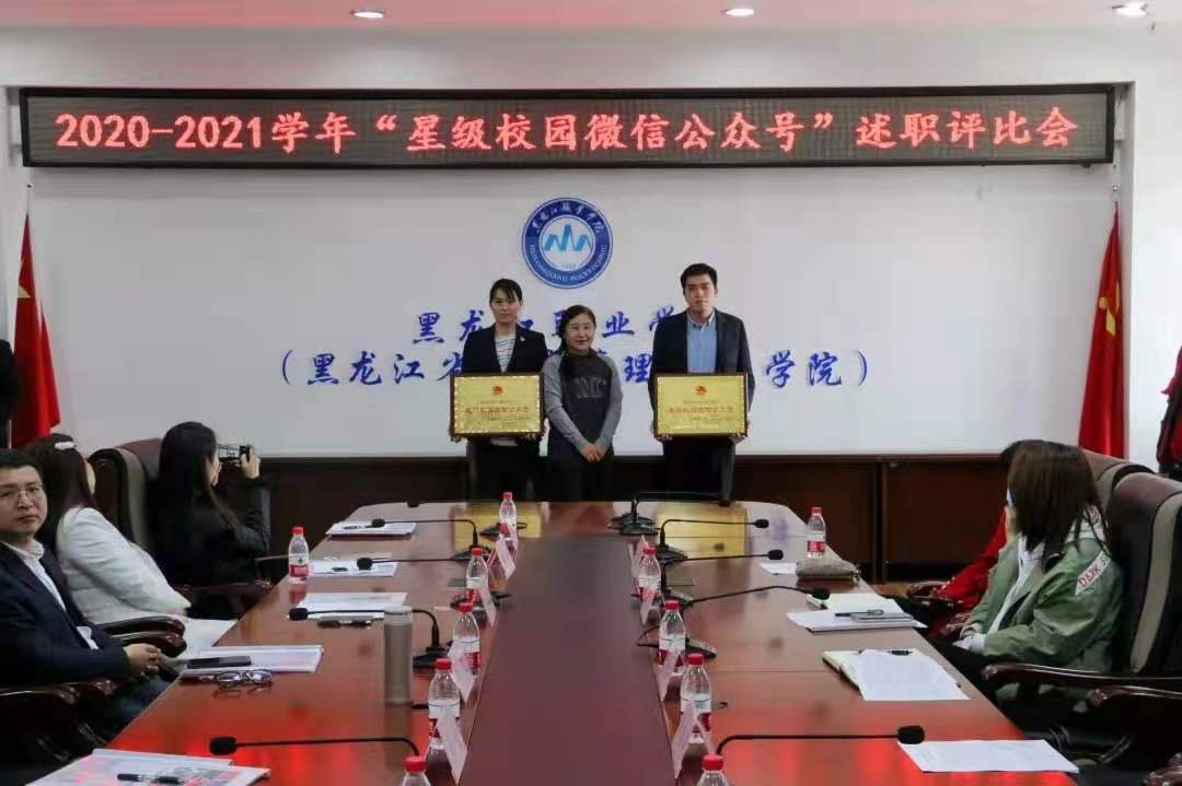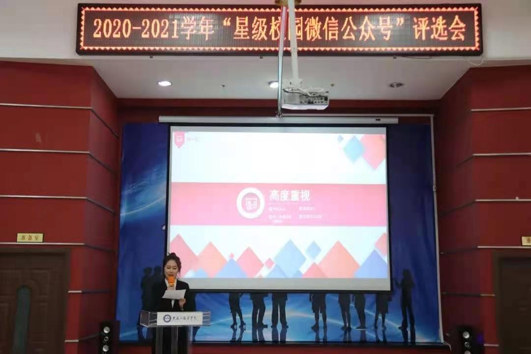 在二校区,经过各学院述职,食品药品学院脱颖而出,荣获2020-2021学年“星级校园微信公众号”荣誉称号;食品药品学院团总支书记胡文彦老师荣获“星级校园微信公众号优秀指导教师”荣誉称号;食品药品学院学生新媒体中心主任张鑫同学荣获“校园新媒体优秀运营个人”荣誉称号。