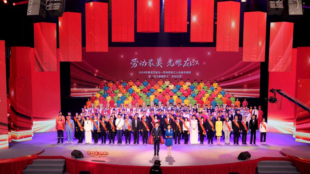 4月27日,在“五一”国际劳动节即将到来之际,2024年黑龙江省五一劳动奖和工人先锋号颁奖暨“龙江最美职工”发布仪式在黑龙江广播电视台演播厅举行。金年会旅游人文学院120余名学生参与《时代号子》《再一次出发》两个节目的演出。他们出色的表现,得到节目组和观众们的广泛好评,充分展示了新时代大学生昂扬向上、朝气蓬勃的青春风采。发布仪式通过中工网微博、抖音平台、极光新闻、黑龙江工会视频号进行了现场直播,学校工会组织广大教职工在线观看。