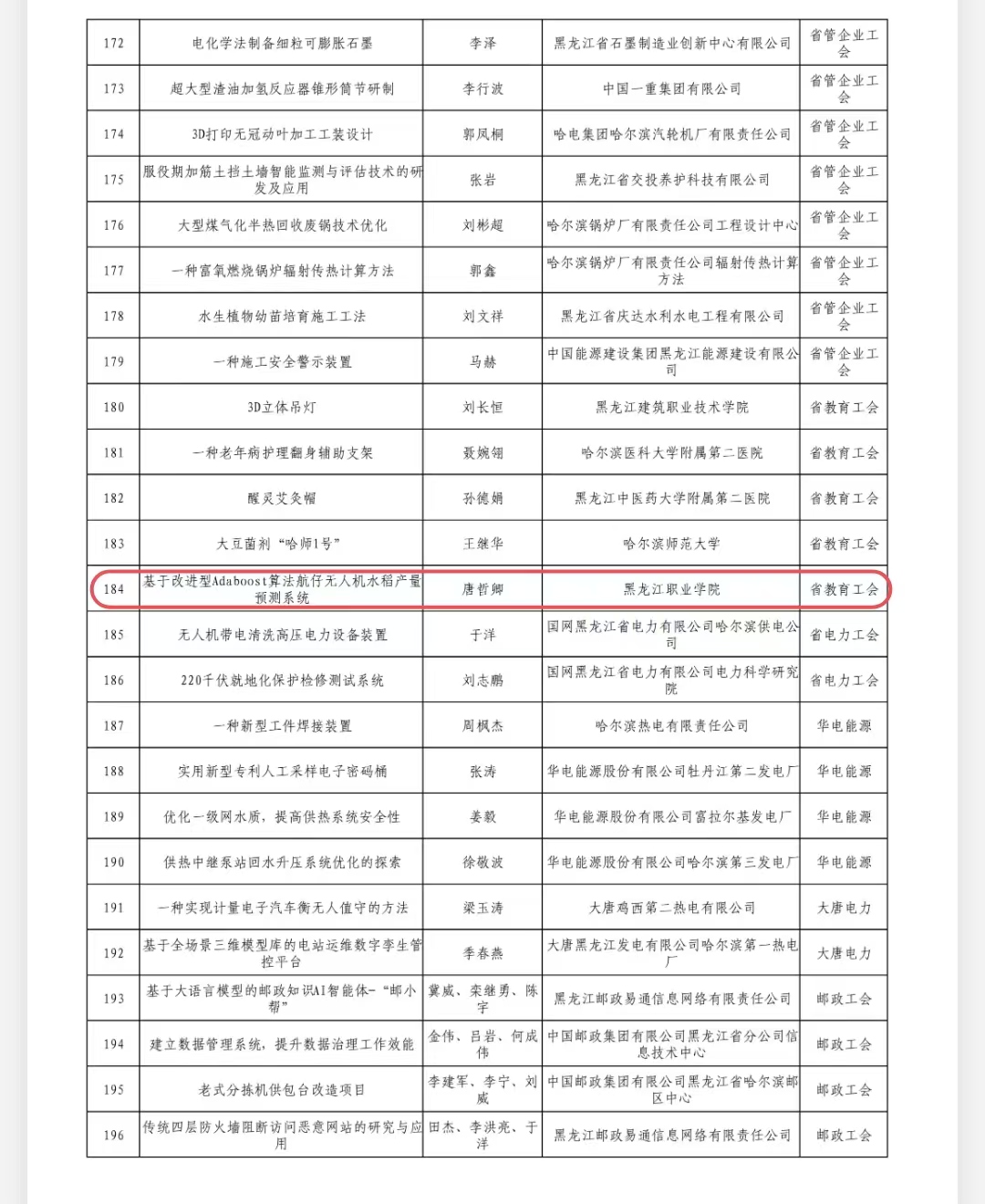 近日,省总工会发布《2024年全省职工“五小”创新竞赛优秀成果名单》。由学校工会推荐,金年会教师唐哲卿开发的“基于改进Adaboost算法航仔无人机水稻产量预测系统”创新成果荣获一等奖,这是金年会第一次获得此项荣誉,为全省创新驱动发展作出贡献。