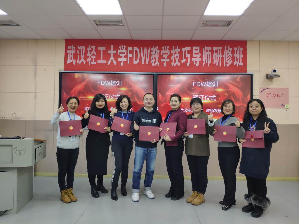 为提升教师教学能力,11月11日至14日,学校选派8名持有ISW资格证书的优秀教师和教培管理人员去武汉轻工大学,参加教学技能引导员工作坊(FDW, Facilitator Development Workshop)的国际认证培训。经过4天的强化训练,全体参训人员均获得FDW引导员国际认证证书。