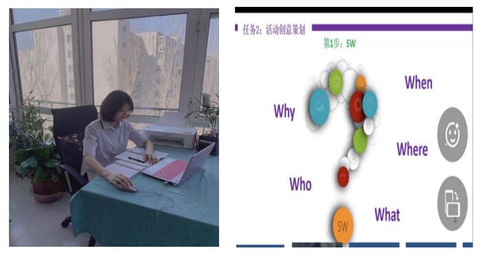 为贯彻疫情期间“停课不停学”“线上保质量”的要求,各方都在积极探索网课教学的新方式,为做好这次线上开放课工作,校级督导郭艳坤、李蕾多次进入课堂听课,与主讲教师研究课程设计,对授课环节、时间分配、网络平台等进行详细的交流与建议,质量监控中心袁晓初经常过问准备情况,帮助解决授课二维码等问题,范贞主动承担助教角色。张东娜勇于担当,全心投入,课前通过国家会展策划与管理专业资源库微知库教学平台提供教学视频、授课指南等学习材料,供学生预习和把握课上学习要点。课中采用钉钉直播为主,突出以学生为中心,采取问题导向、学生视频任务展示、师生共评、PPT图片展示等方式组织教学,内容涵盖教材精读文本、图文案例、微课视频、音频介绍、新闻展示等。通过课堂研讨、点答式提问时时关注学生学习状态,带领学生自主学习,不断激发学生的学习热情,保证了学生全员全程参与并有效达成学习目标。课后通过布置作业、师生研讨和答疑辅导等巩固学生学习成果。
