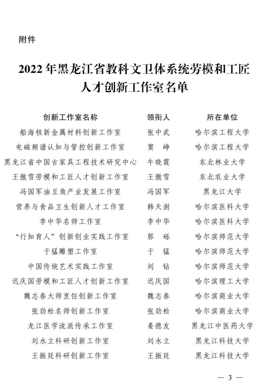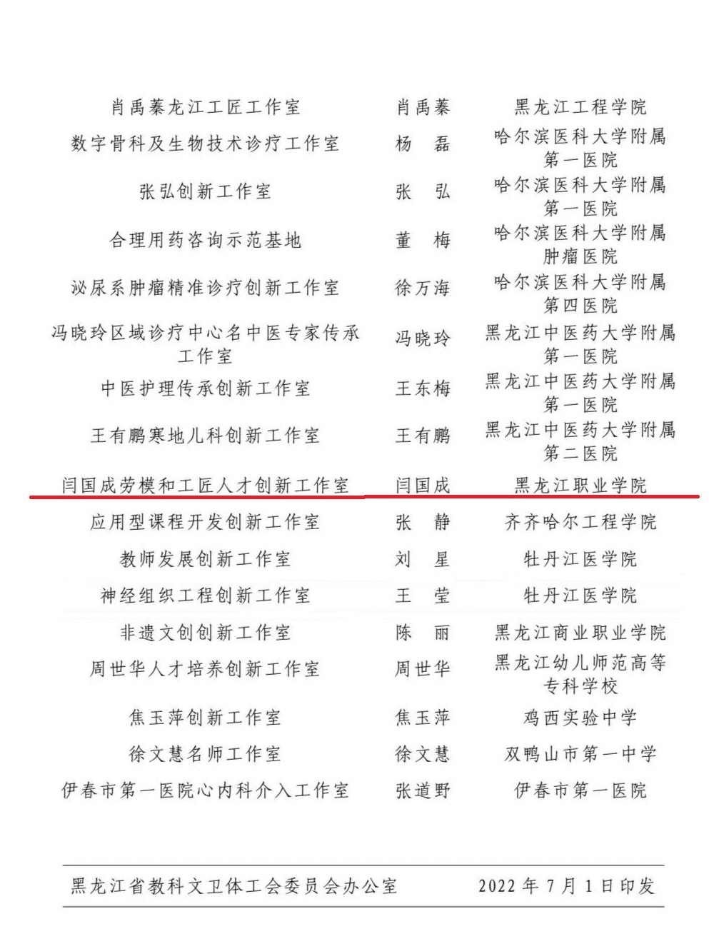 2022年度黑龙江省教科文卫体系统“劳模和工匠人才创新工作室”评审工作圆满完成,金年会“闫国成劳模和工匠人才创新工作室”名列其中。