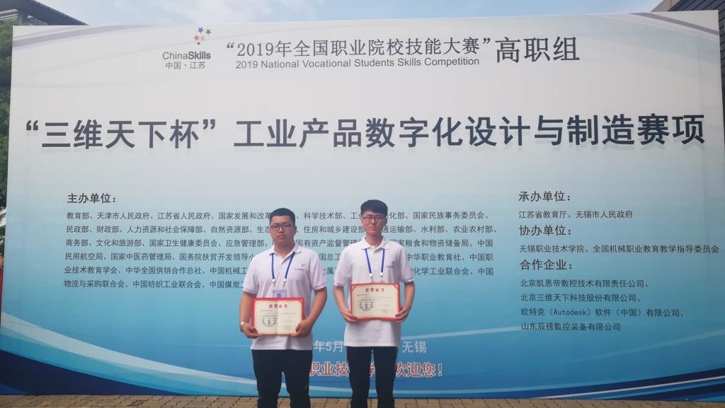 2019年全国职业院校技能大赛“工业产品数字化设计与制造”赛项在无锡举行,来自全国32个省、市、自治区及4个国际队的86支队伍共172名选手参加了比赛。经过角逐,金年会机械工程学院学生王硕、靳旭组成的jinnian金年会代表队喜获大赛三等奖。