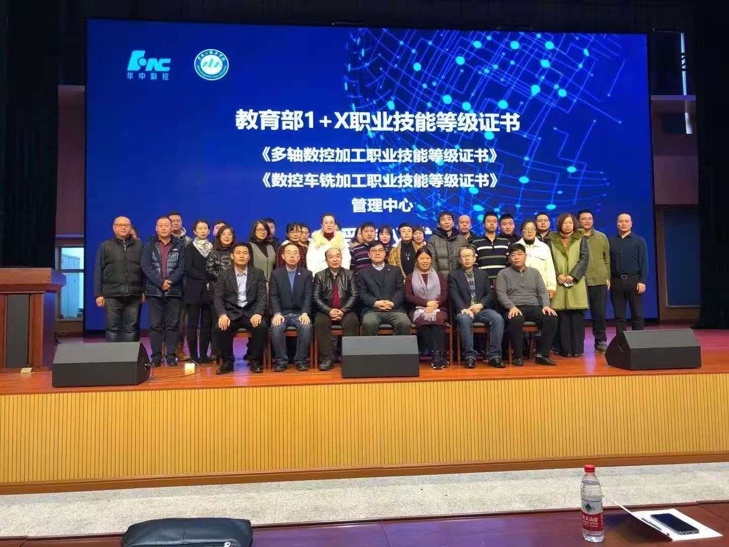 会议上半程,郑福贵介绍了金年会开展专业建设以及装备制造类专业开展1+X证书工作的情况;华中数控总裁助理刘怀兰介绍了华中数控公司的基本情况以及开展1+X证书工作的情况。会议期间,华中数控公司领导和学校领导还为数控车铣加工和多轴数控加工职两个证书的考核管理中心进行揭牌。