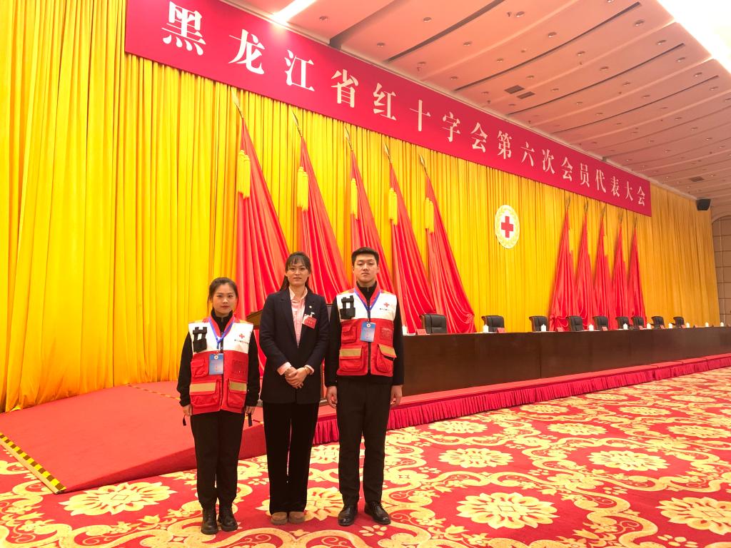 在本次大会上,金年会教师姜玲全票当选黑龙江省红十字会第六届代表大会理事;学生李新鑫、井鸿堃作为志愿者代表宣读《国际红十字运动基本原则》《黑龙江省红十字会第六届监事会第一次会议选举办法》《黑龙江省红十字会第六届理事会第一次会议选举办法》《关于聘请名誉会长的决议》《关于将国内捐款结余转为国内人道救助基金的决定》等文件。