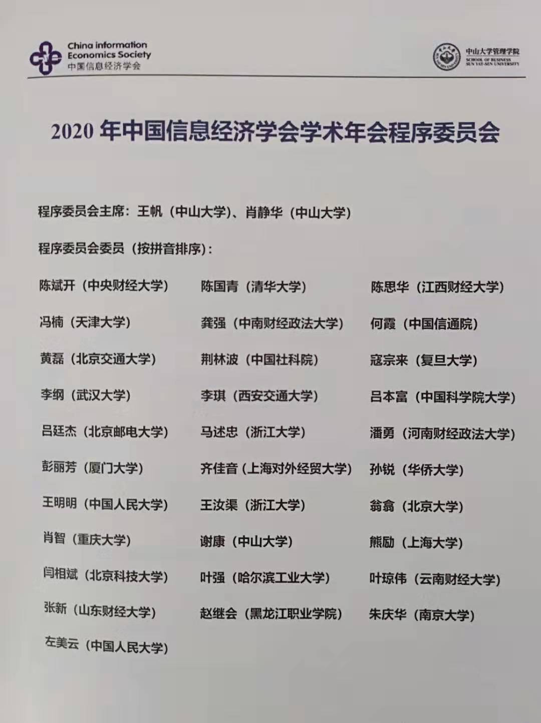 本届学术年会以“数字经济时代的信息经济与信息管理变革与创新”为大会主题,聚焦数字经济情境下的信息经济与信息管理创新研究。会上,赵继会被推选为2020年中国信息经济学会学术年会程序委员会委员,这是程序委员会中唯一一名高职院校的专家学者,是全国高职院校的代表。郑福贵增选为中国信息经济学会学会理事,也是新增选的唯一一名高职院校的学会理事。