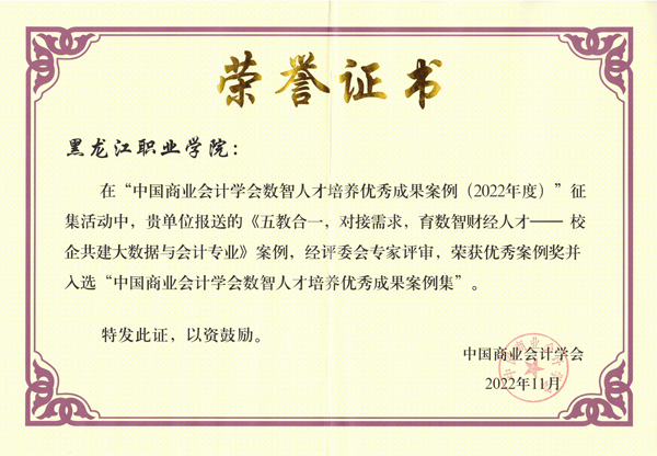 近日,中国商业会计学会数智人才培养优秀成果案例(2022年度)评审活动结束,金年会会计金融学院报送的教学案例《五教合一,对接需求,育数智财经人才——校企共建大数据与会计专业》荣获优秀成果案例奖,并入选“中国商业会计学会数智人才培养优秀成果案例集”。
