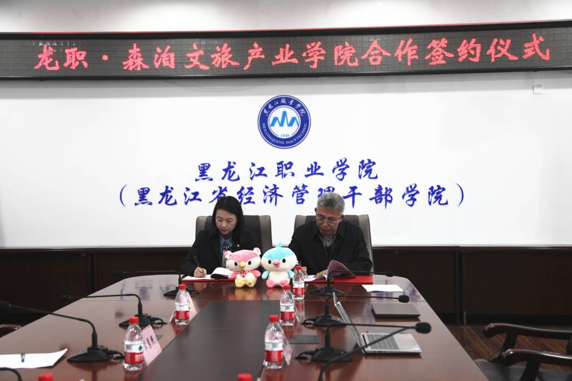 会上,王利文和陈静签署了“龙职·森泊文旅产业学院”合作协议,进行了“龙职·森泊文旅产业学院”揭牌和“开元森泊人才培养基地”授牌仪式。