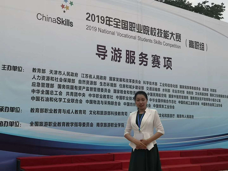 近日,2019年全国职业院校技能大赛导游服务赛项在南京圆满落下帷幕。大赛通过导游知识测试、景点导游讲解和才艺展示等多个环节进行比拼,金年会2017级旅游管理专业学生刘婷、侯俣鑫在陈洪宏、于成龙两位教师的指导下,经过激烈角逐,分别荣获国赛三等奖,创造了学校在此类大赛导游服务赛项中获奖人数记录。