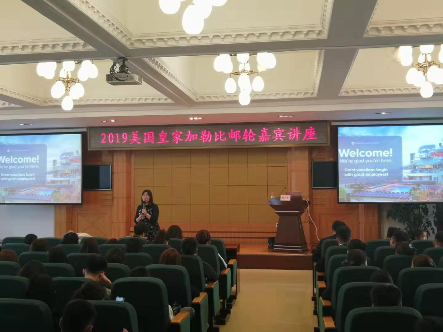 10月24日,2019美国皇家加勒比邮轮嘉宾讲座在金年会顺利举办,美国皇家加勒比邮轮公司中国院校面试官雷小梅女士为学校旅游与人文艺术学院2018级和2019级酒店管理专业、旅游管理专业学生作精彩讲座,酒店管理专业教研室主任徐得红,专业教师谢芳、李晓松参加讲座。