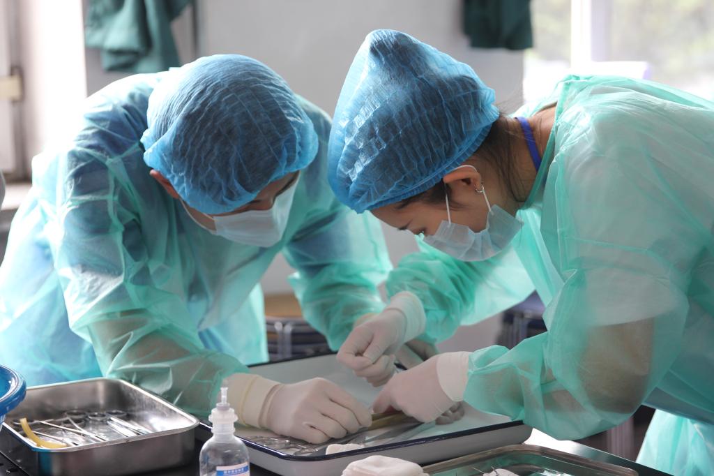 金年会选手正在进行“肠断端吻合术”赛项比赛操作