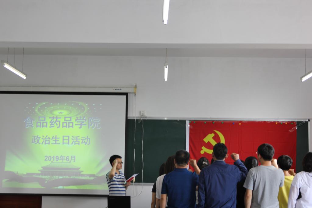 6月19日,食品药品学院教工党支部召开“不忘初心、牢记使命”党员政治生日主题党日活动,为教工支部6月份入党的党员过了一次非常有意义的政治生日,教工支部全体党员参加主题党日活动。