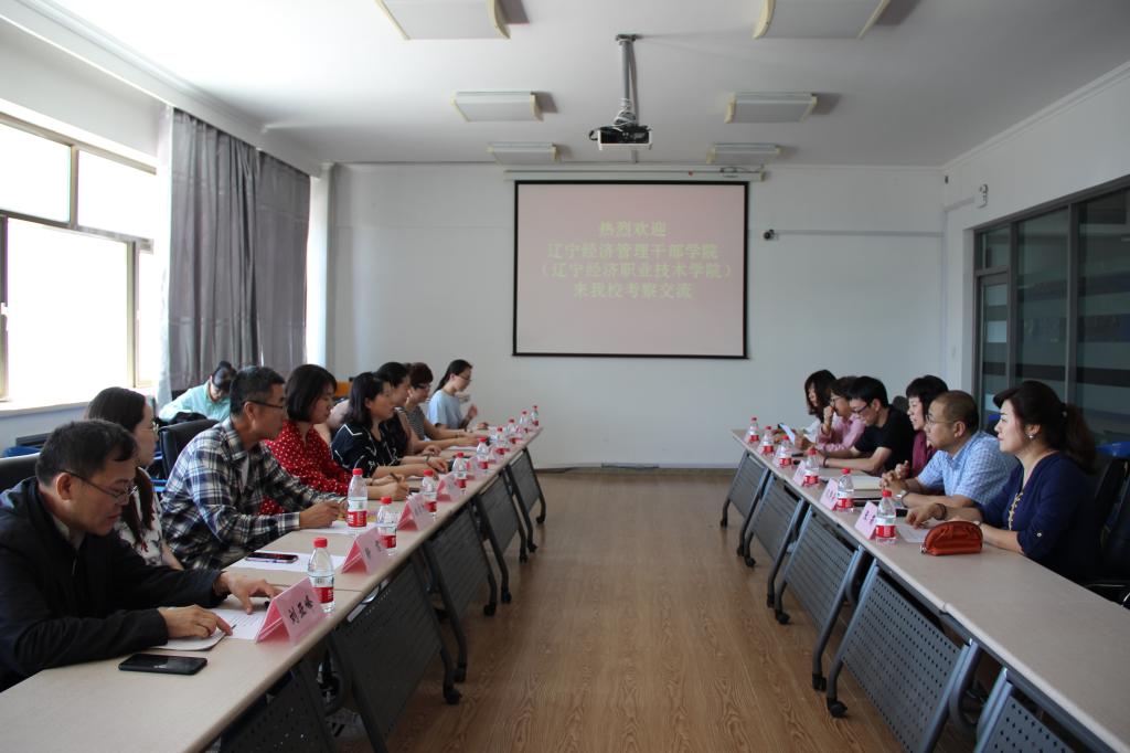 6月21日,辽宁经济管理干部学院通识教学部党总支书记杨敏一行九人到金年会考察交流,通识教育学院党总支书记孔繁海、院长彭秋艳带领中文和外语教研室主任等人陪同参观了学校计算机实训室并组织召开双方见面会。