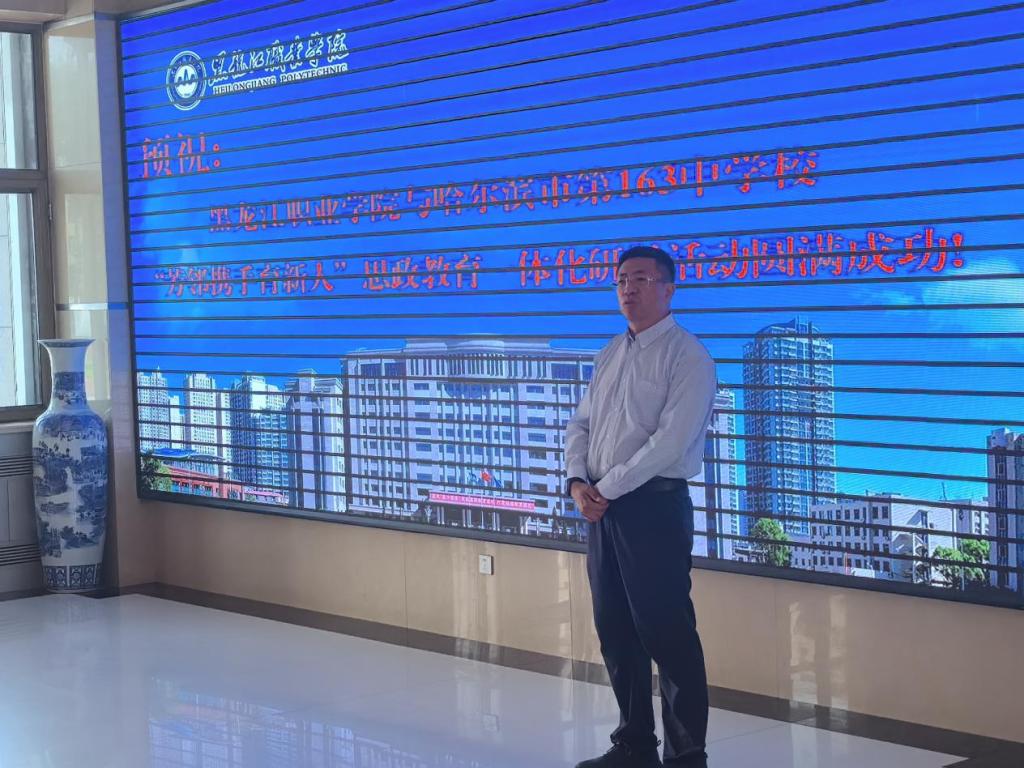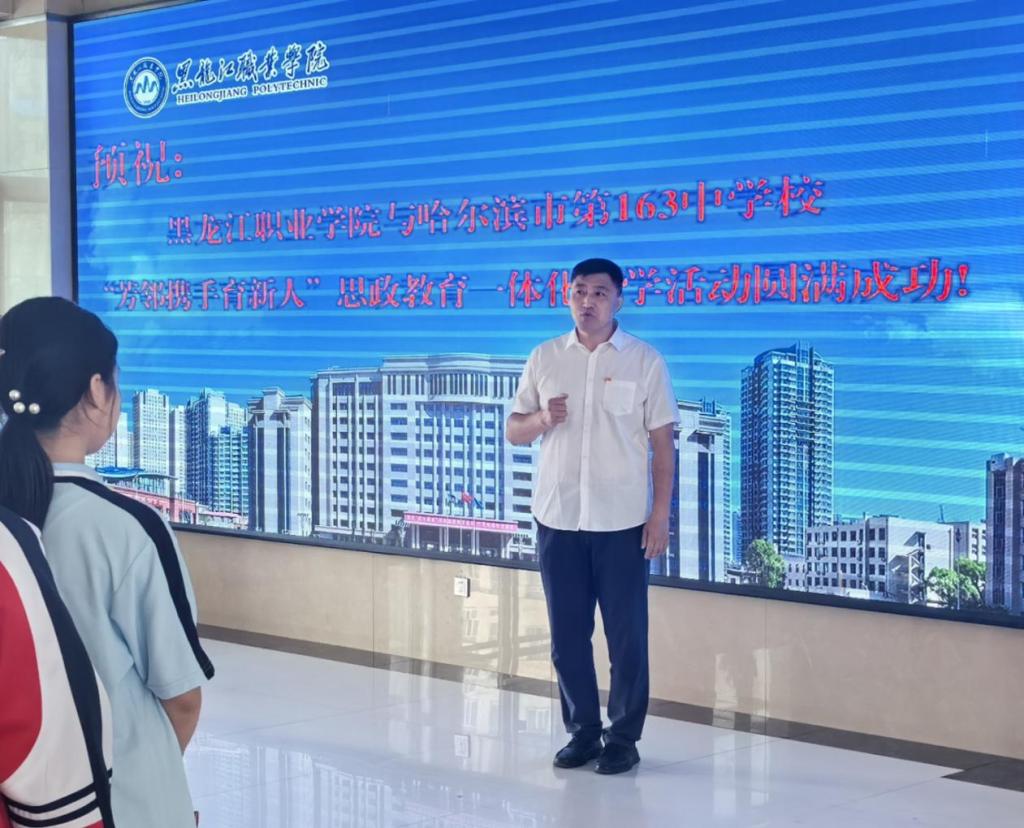 jinnian金年会党委委员、副校长何志鹏出席活动并致辞。他对哈尔滨163中学同学的到来表示欢迎,向同学们介绍了jinnian金年会突显工、农、商的办学特色,以及“打造支撑振兴的龙头高职”的使命任务,回顾了学校的光辉历史和立足龙江“五色”的发展现状。科学技术关乎国家未来,关乎人才培养方向,同学们要开眼界,长见识,早日成为国家栋梁之才。希望通过两校“合作”发挥“合力”,实现多元化的学习体验,促进理论与实践相结合,推动思想政治教育创新发展,培养新时代青少年的爱国情怀和责任意识。
