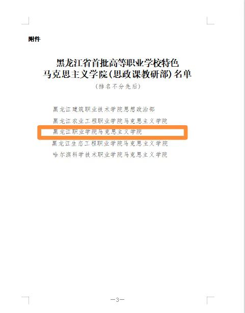 12月6日,黑龙江省教育厅公布了首批高等职业学校特色马克思主义学院(思政课教研部)5所,金年会马克思主义学院成功入选。