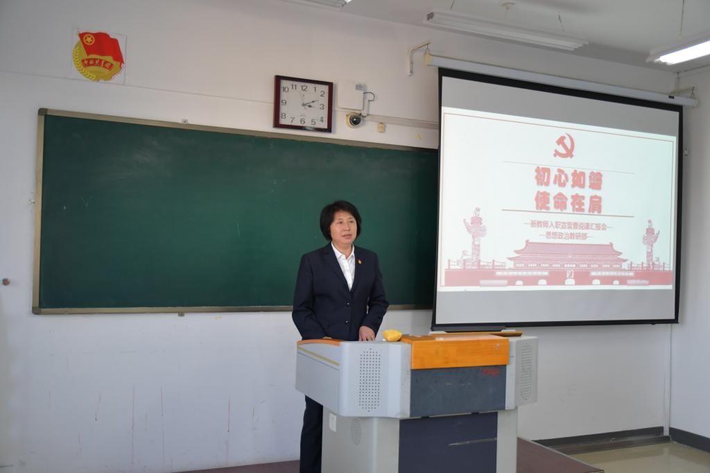 10月7日,在双节的喜庆气氛中思想政治教研部直属党支部举办“初心如磐,使命在肩——新教师入职宣誓暨说课汇报会”主题党日活动,全体党员教师身着校服,佩戴党徽参加活动,教学办主任徐瑛主持仪式。