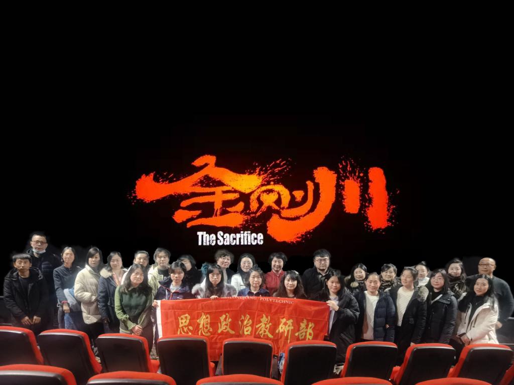 地陷进去独身挡,天塌下来只手擎,两脚熊熊踏烈火,浑身闪闪披彩虹。一首《英雄赞歌》,唱出了志愿军战士的英勇无畏。今年10月25日是中国人民志愿军抗美援朝出国作战70周年纪念日。为进一步加强全体党员教师爱国、爱党、爱社会主义教育,传承和弘扬伟大的抗美援朝精神,11月27日,思政教研部直属党支部利用政治学习时间组织党员教职工30余人走进电影院,集中观看了爱国主义影片《金刚川》。