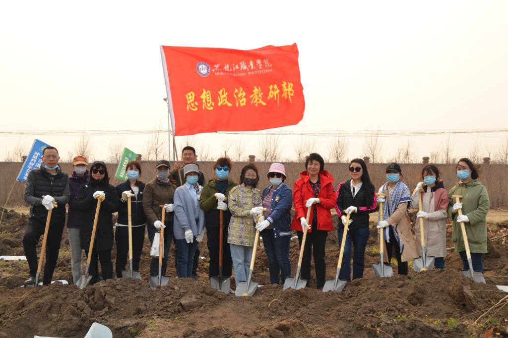 芳菲四月,春光正浓,眼下正是植树造林的好时节。习近平总书记在参加义务植树活动时强调,要倡导人人爱绿植绿护绿的文明风尚,建设人与自然和谐共生的美丽家园。为相应这一号召,以实际行动迎接建党100周年,思政教研部一行16人在主任陈桂香的带领下,驱车40余公里至哈尔滨市园林种苗科研示范基地进行了一次别开生面的党史学习暨主题党日活动。