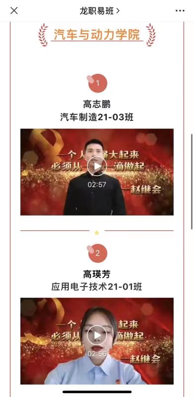 为进一步展现学校素质养成教育成果,营造积极向上、求实创新的学习氛围,引导学生养成良好习惯,促进学生素质全面提升,按照学校第七届“铺路石文化节”暨庆祝“龙职”成立10周年系列活动安排,4月18日至5月18日,学工部开展了“素质养成教育”成果征集、“素质行动达人”评选、二级学院“素质养成教育”成果展播等系列活动。
