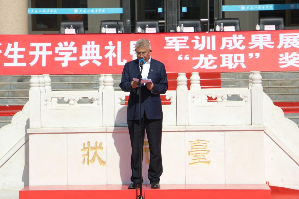 9月23日,学校在运动场隆重举行2024级新生开学典礼暨军训成果展示、“龙职”奖颁奖大会。武警哈尔滨支队中校吴鹏,学校校长王利文,党委副书记周家郁,副校长吴艳秋,党委委员、宣传统战部部长杨东辉,党委委员、组织部部长石明杰出席活动,2024级全体新生和全校教职工参加大会。大会由周家郁主持。