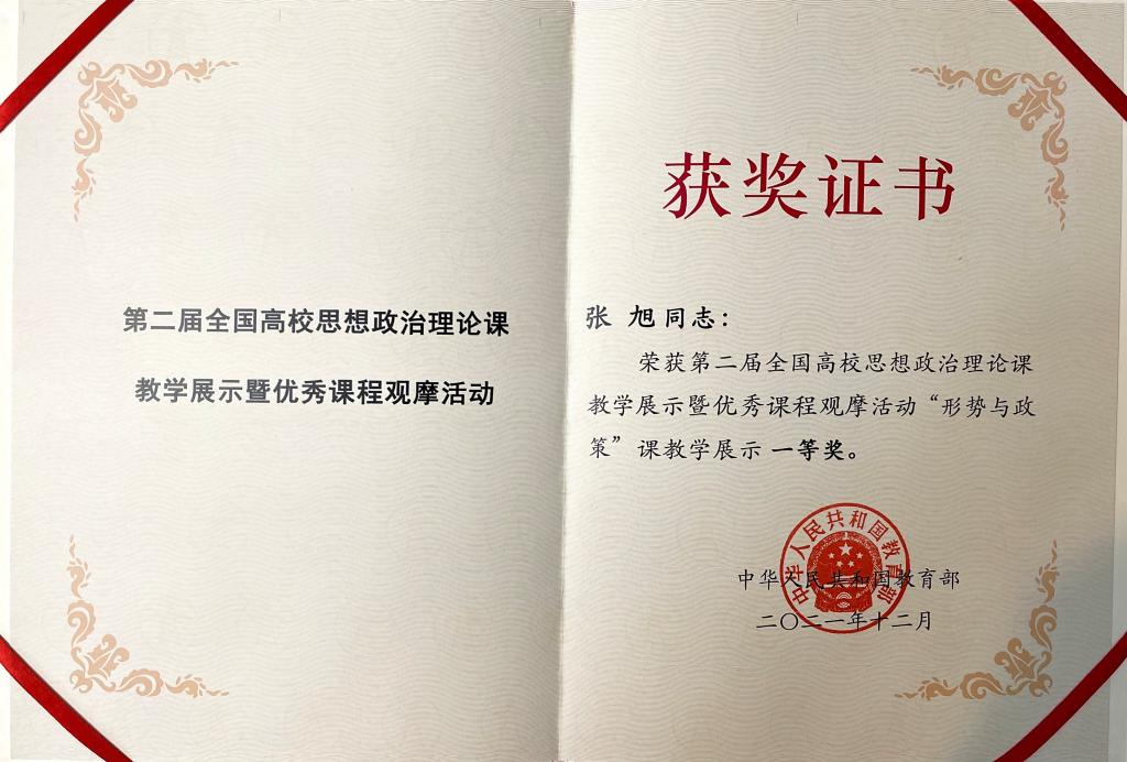 所谓教学相长、互相促进,在“龙职”“铺路石”精神的感召和带动下,我不断奋进在三尺讲台上,不忘初心和使命,2021年12月荣获教育部“第二届全国高校思想政治理论课教学展示暨优秀课程观摩活动‘形势与政策’课教学展示”一等奖。面对新起点、新机遇、新挑战,我会一如既往地奋进在思政教学的新征程上。